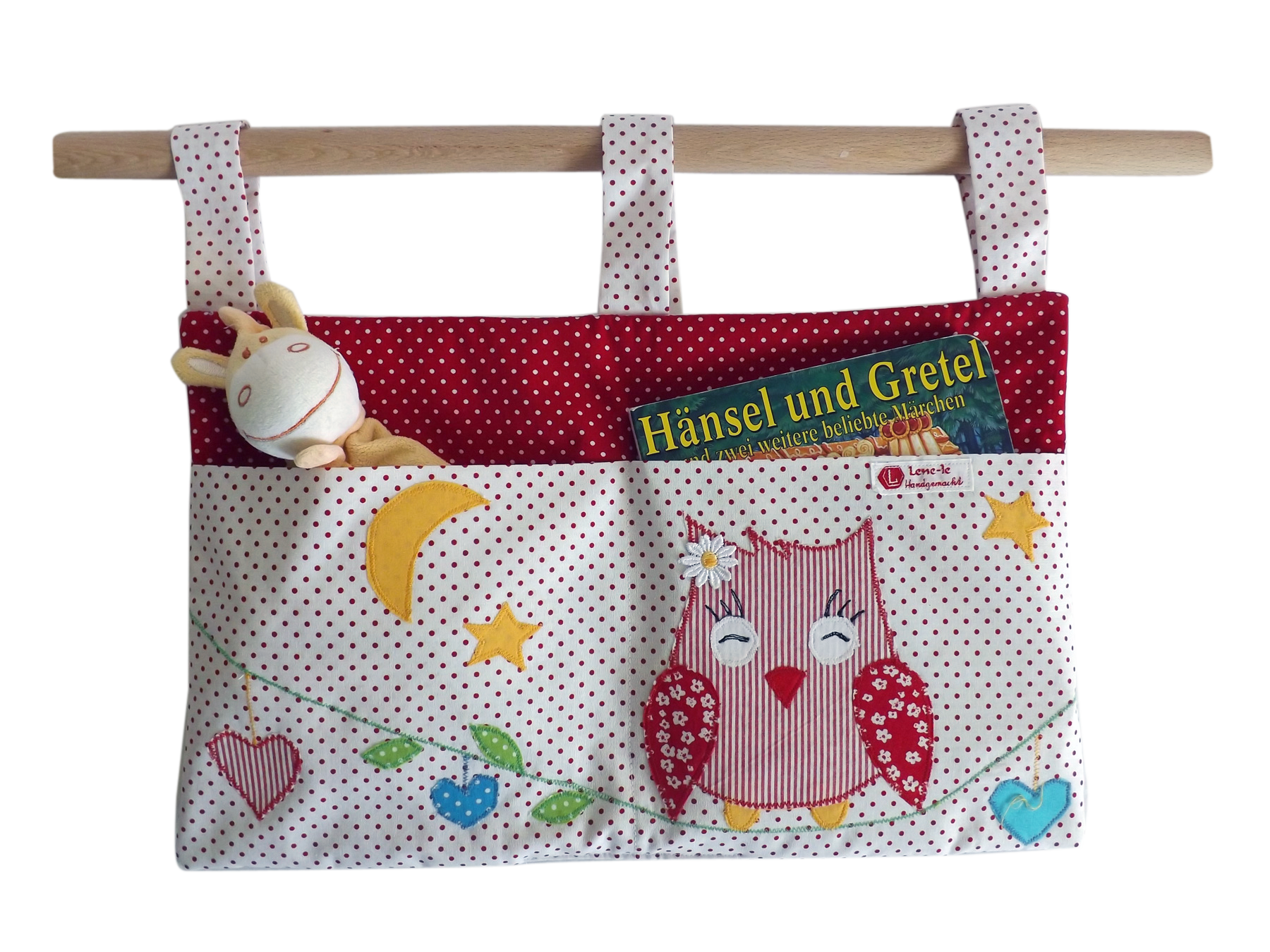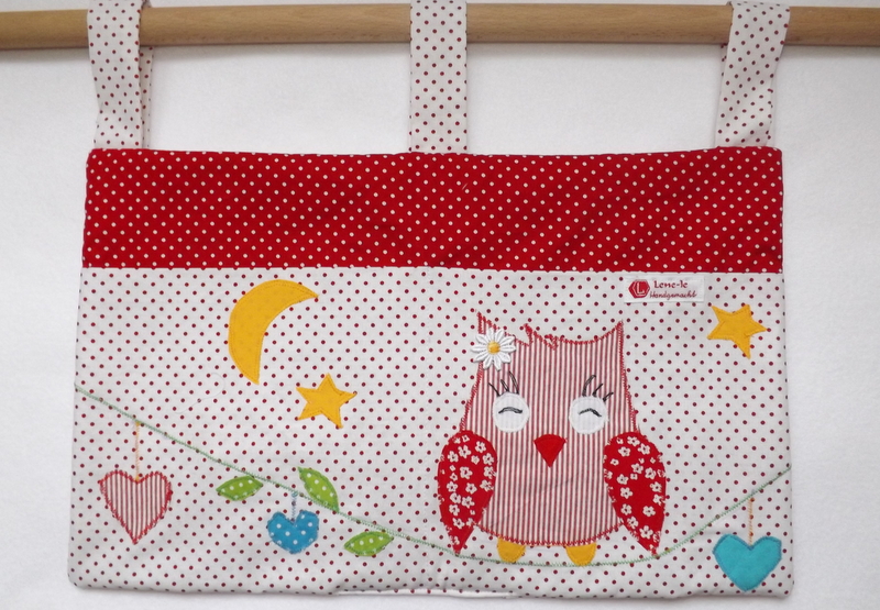 < !Praktisches Utensilo für das Kinderbettchen od. Laufgitter in rot-weiß mit Applikation!!!