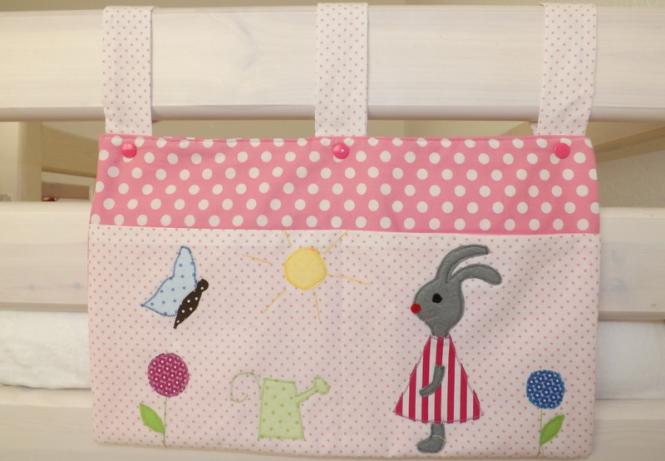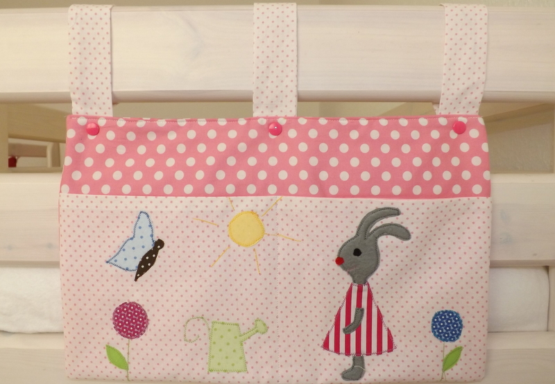 Praktisches Utensilo für das Kinderbettchen od. Laufgitter in rot-weiß mit Applikation!!!