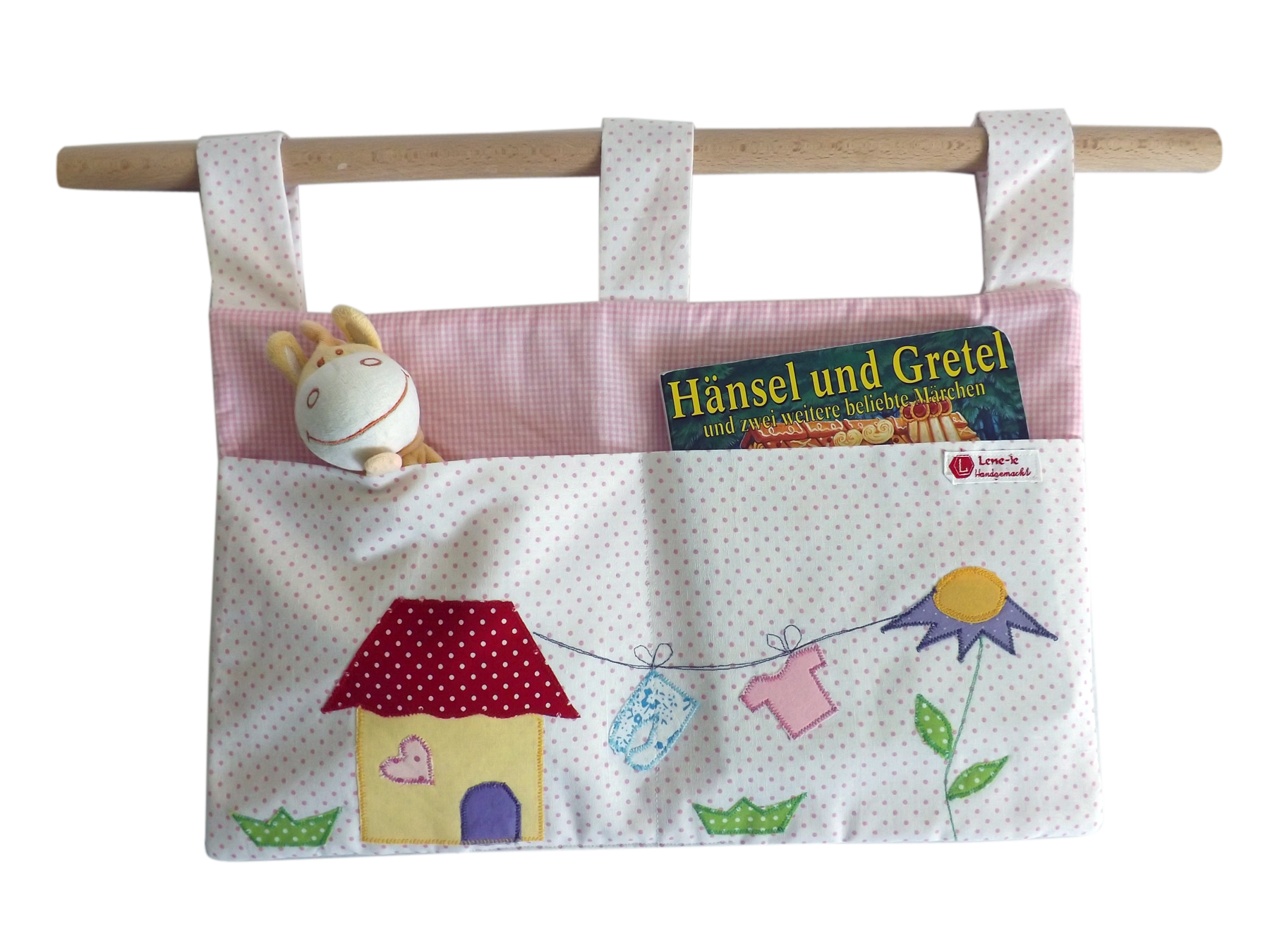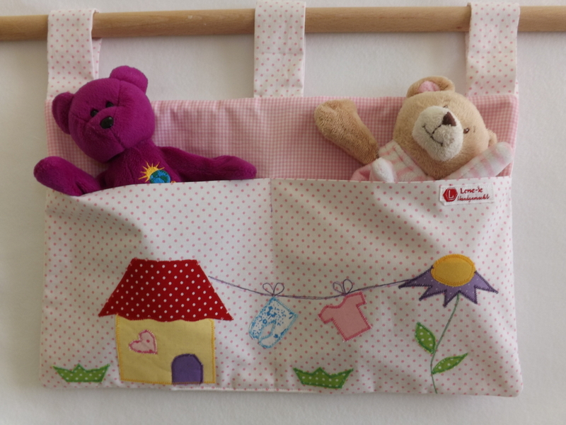 !Praktisches Utensilo für das Kinderbettchen od. Laufgitter in rot-weiß mit Applikation!!!
