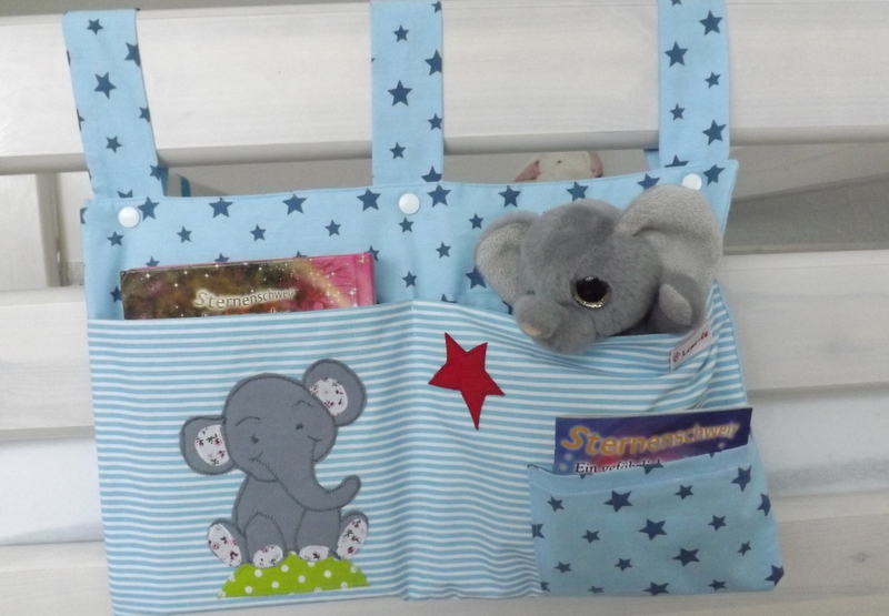 Praktisches Utensilo für das Kinderbettchen od. Laufgitter in rot-weiß mit Applikation!!!