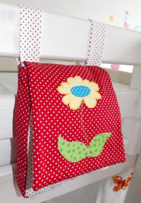 Praktisches Utensilo für das Kinderbettchen od. Laufgitter in rot-weiß mit Applikation!!!