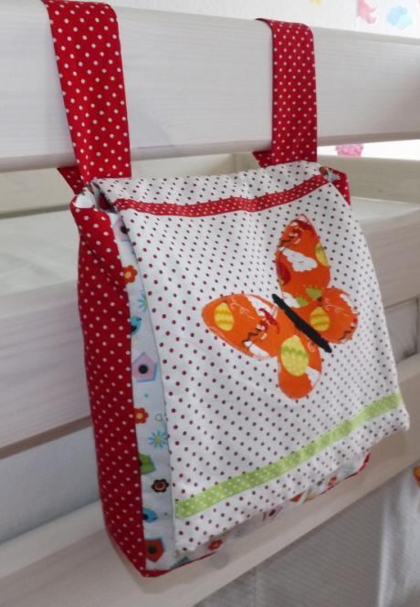 Praktisches Utensilo für das Kinderbettchen od. Laufgitter in rot-weiß mit Applikation!!!